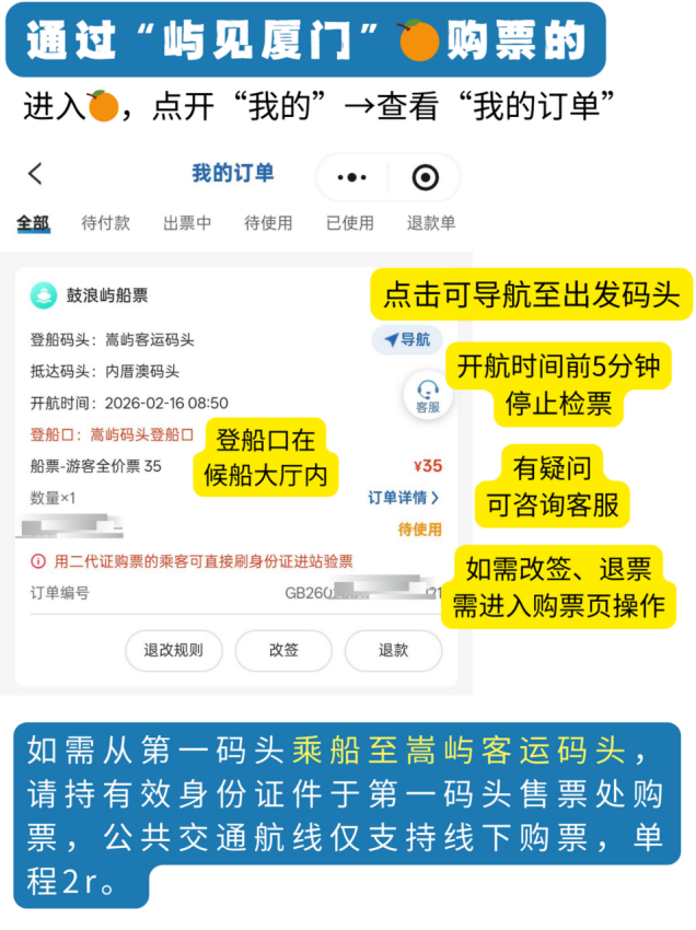 【常见问题】 一、购买的船票可以退票、改签吗(旅行社团队票除外)? (一)退票手续费核收标准 1.距开航前6天(含)以上退票的,免收手续费。 2.距航班开航时间前48小时(不含)以上办理退票的,按每张船票票价的5%收取退票手续费; 3.距航班开航时间前48小时(含)至24小时(不含)办理退票的,按每张船票票价的10%收取退票手续费; 4.距航班开航时间前24小时(含)以内办理退票的,按每张船票票价的20%收取退票手续费; 5.上述手续费计算的尾数以5角为单位,尾数小于2.5角的舍去、2.5角(含)以上且小于7.5角的计为5角、7.5角(含)以上的进为1元。 (二)改签规定 1.通过我司官方网络购票平台购买的未使用的船票,在航班开航时间前,可改签预售期内有余票的航班,仅限一次;在航班开航时间后,可改签票面乘船日期当日有余票的其他航班,仅限一次;在我司码头售票窗口与自助机购买的未使用的船票,可在码头运营时间内至现场人工售票窗口办理改签一次,且仅能改签与原船票相同出发日期的航班。 2.改签手续费核收标准: (1)距开航前6天(含)以上改签的,免收手续费。 (2)距开航前不足6天改签的,手续费按原每张船票票价的5%收取; (3)开航时间前改签的船票,乘客取消订单的,退票手续费按每张船票票价的15%收取; (4)开航时间后改签的,改签手续费按每张船票票价的20%收取。 (5)上述手续费计算的尾数以5角为单位,尾数小于2.5角的舍去、2.5角(含)以上且小于7.5角的计为5角、7.5角(含)以上的进为1元。 3.错过了航班可以改签吗? (1)如当天船票还没有售完: 通过我司官方网络购票平台购买的未使用的船票,您可改签当日有余票的航班,仅限一次; (2)如当天船票售完: 通过我司官方网络购票平台购买的未使用的船票,在航班开航时间后,可改签至当日夜间航班(轮渡码头至三丘田码头)的航班,仅限一次。 |